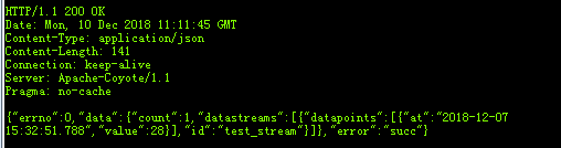 Content-Length:66,66的长度为:{"datastreams":[{"id":"test_stream","datapoints":[{"value":28}]}]} 的长度
