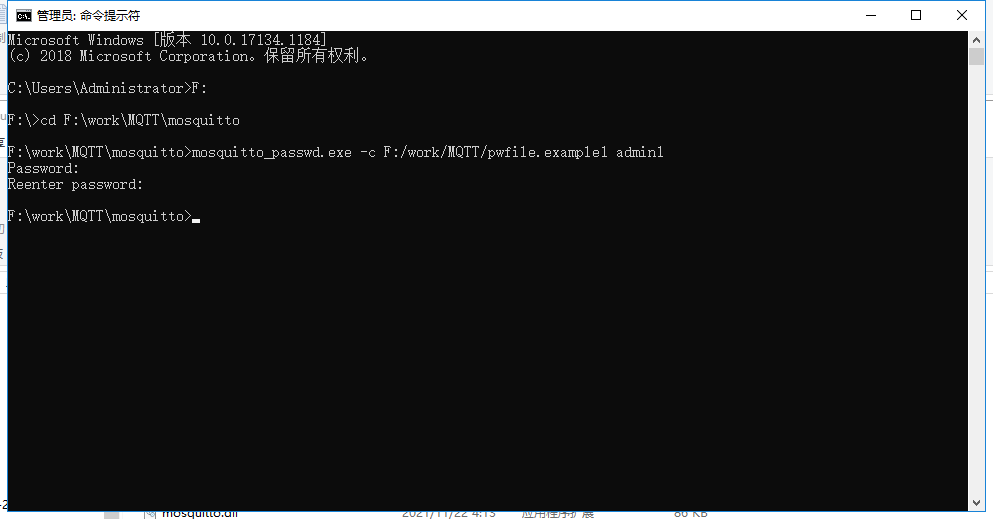mosquitto_passwd.exe -c F:/work/MQTT/pwfile.example1 admin1