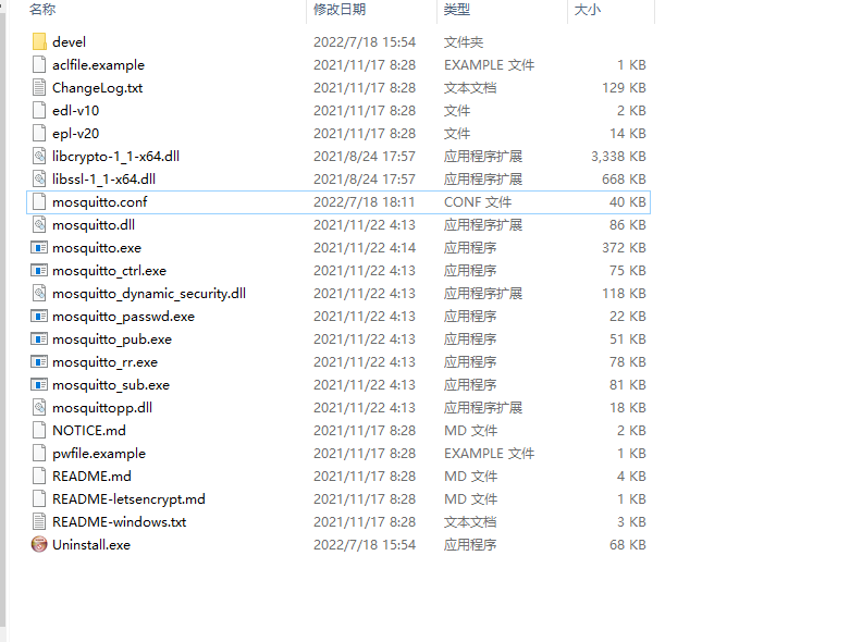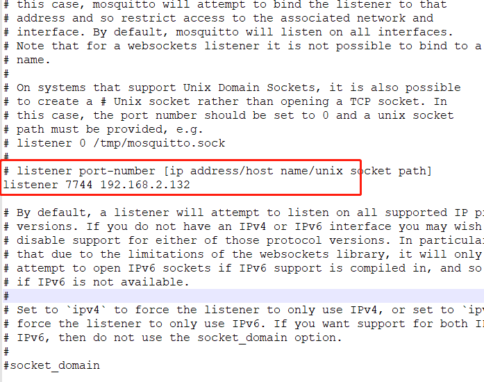 4.1服务端可以通过mosquitto.conf文件来进行参数配置,主要配置端口号,用户名密码等
