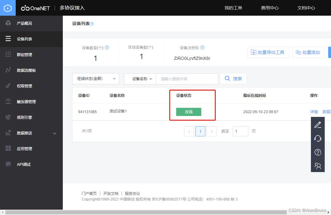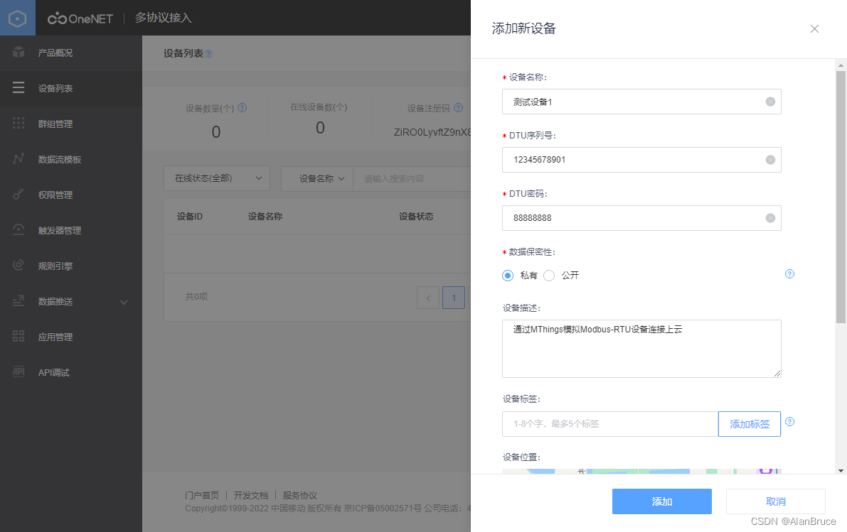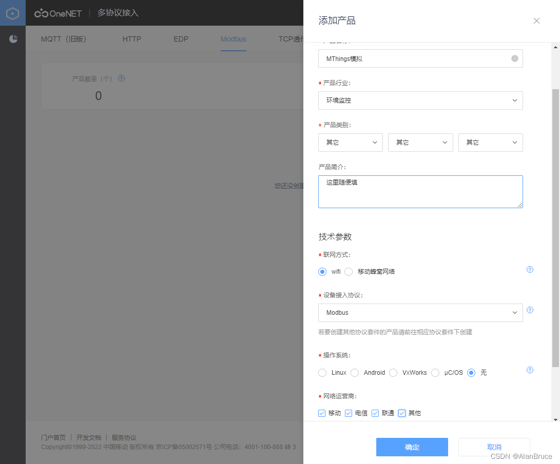 下面进入正题,利用MThings的“会话密钥”功能连接移动OneNet平台,并遥测模拟Modbus设备。