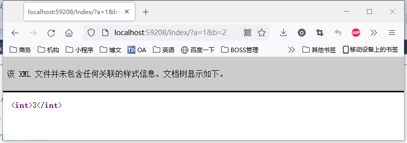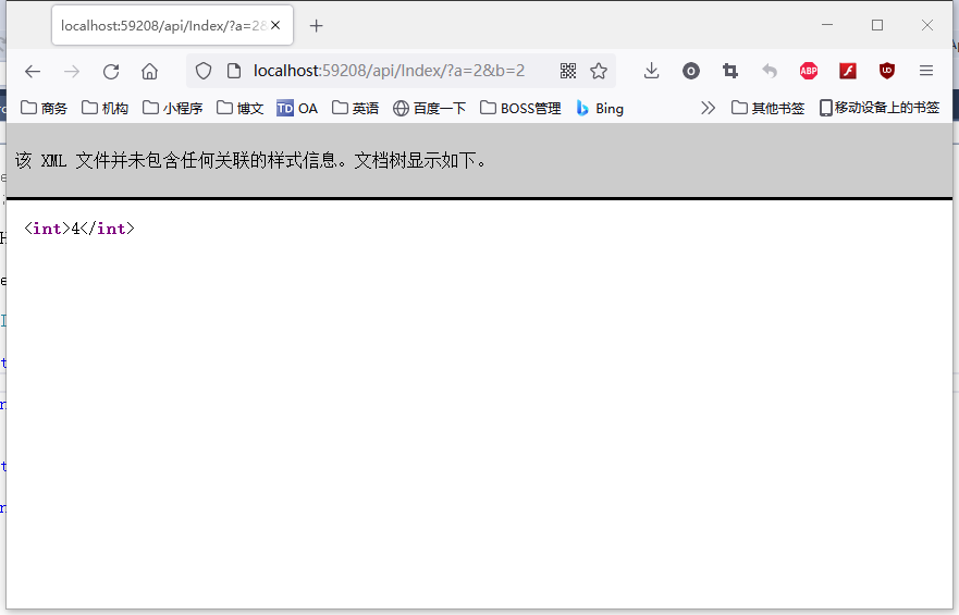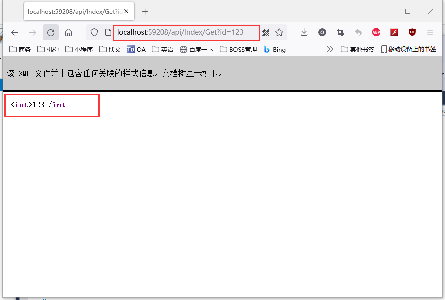 但在返回的页面中始终有“api 该 XML 文件并未包含任何关联的样式信息。文档树显示如下。”的提示,为此,修改WebApiConfig.cs发下: