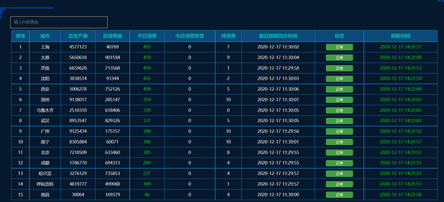 我是靠谱客的博主 彩色小天鹅,这篇文章主要介绍echarts制作的数据实时同步,监控,数据可视化html页面前端源码大家好,今天给大家介绍一款,echarts制作的数据实时同步,监控,数据可视化html页面前端源码(图1)。送给大家哦,获取方式在本文末尾。图表数据动态更新显示(图2)列表数据同步更新显示(图3)列表带数据筛选功能(图4)源码完整,需要的朋友可以下载学习(图5)本源码编码:10185,需要的朋友,关注文末公众号,搜索10185,即可获取。,现在分享给大家,希望可以做个参考。
