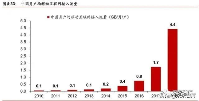 我们可以看出,未来几年全球网络流量将继续保持快速增长,由此带动的对数据计算和存 储的需求也有望快速增长。另外,我们可以从工信部统计的中国移动互联网用户的流量使 用情况可以看出,2018 年中国移动互联网接入流量达到 711 亿 GB,相比与移动互联网大 规模应用前的 2013 年,增长了 60 倍左右。同样,中国月户均移动网接入流量,2018 年 相比与 2013 年也增长了大概 40 倍左右。我们预计,在 5G 带动的新的应用下,网络流量 的增长的幅度或将至少在一个数量级(10 倍)以上。