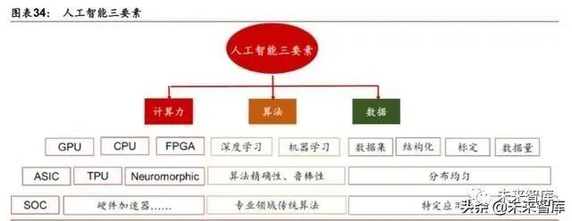 人工智能产业链大致可分为基础层、技术层和应用层三个类别。人工智能具有算力、算法、 数据三要素,其中基础层提供算力支持,通用技术平台解决算法问题,场景化应用挖掘数 据价值。