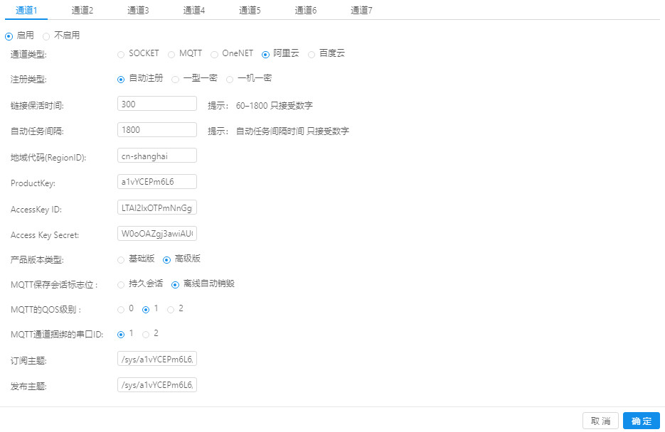 确定保存,然后重启一下设备,就可以连接阿里云了。