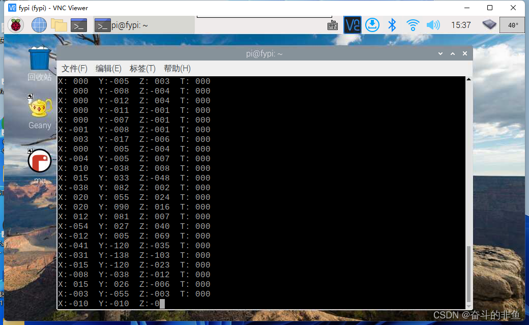 这里我使用了STM32的GPIO9和10进行USART通讯,这里要注意我们STM32里的程序配置的波特率和树莓派打开minicom串口时的波特率要保持一致。OK,我们来验证结果,这里我用的是MPU6050的模块来输出X、Y、Z三轴的输出。