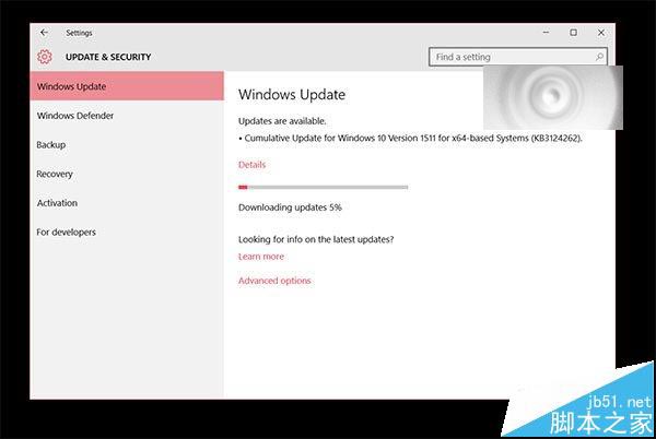 KB3124262累计补丁的下载方法:用户可在设置—更新和安全—Windows更新中检查下载。