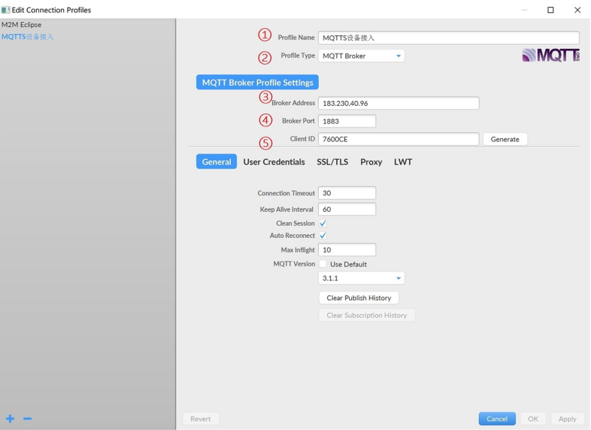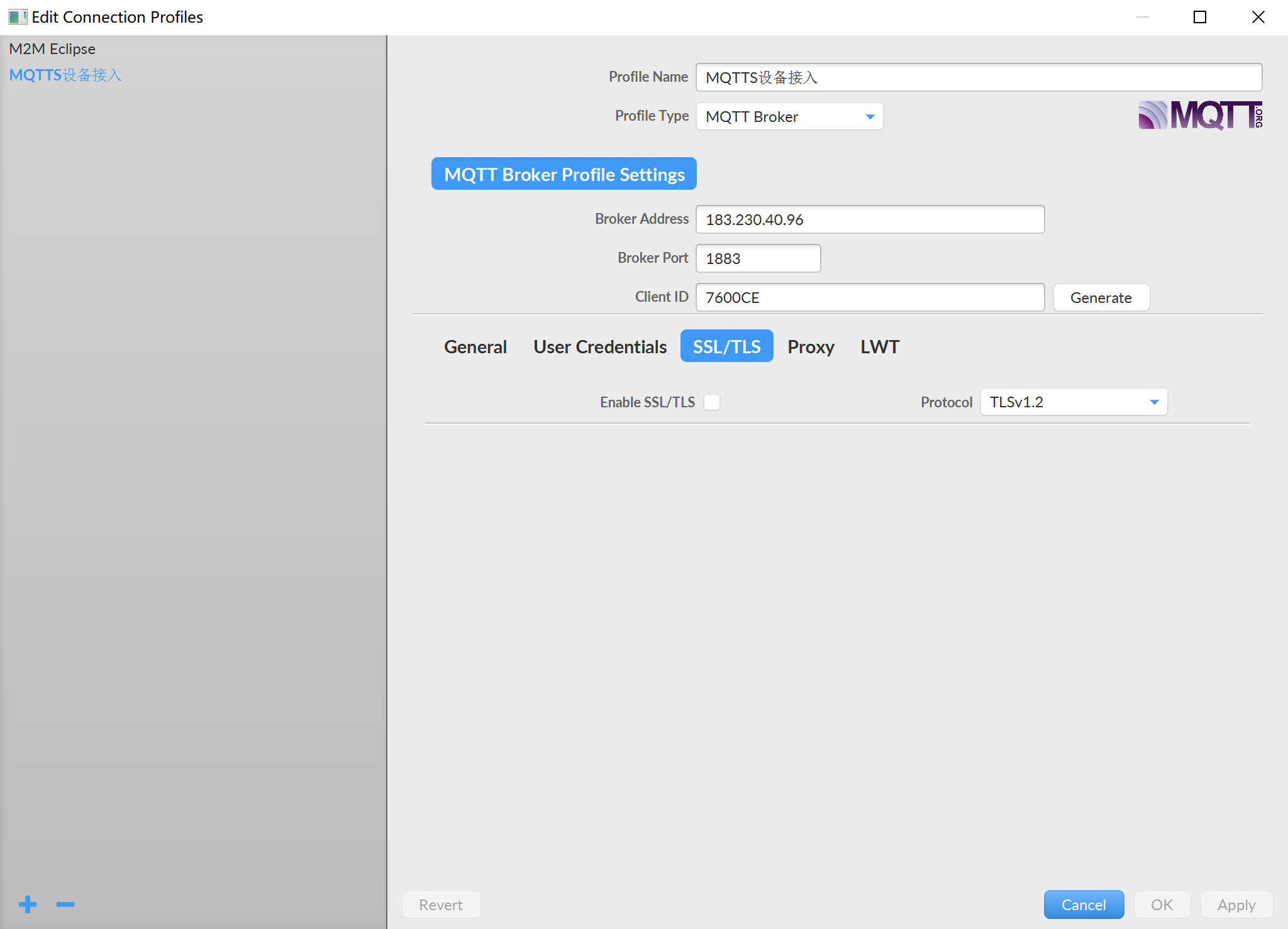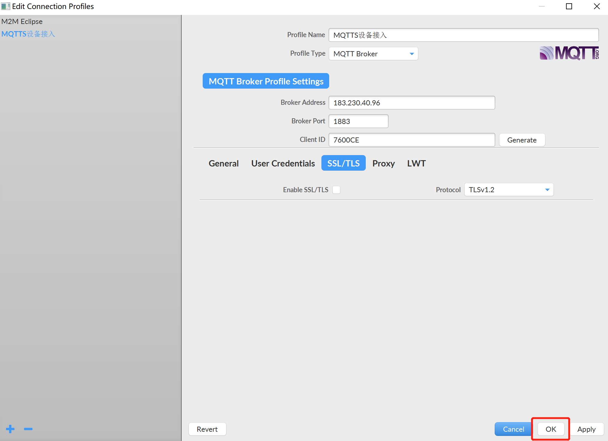 ②、Profile Type:保持默认设置,MQTT Broker;