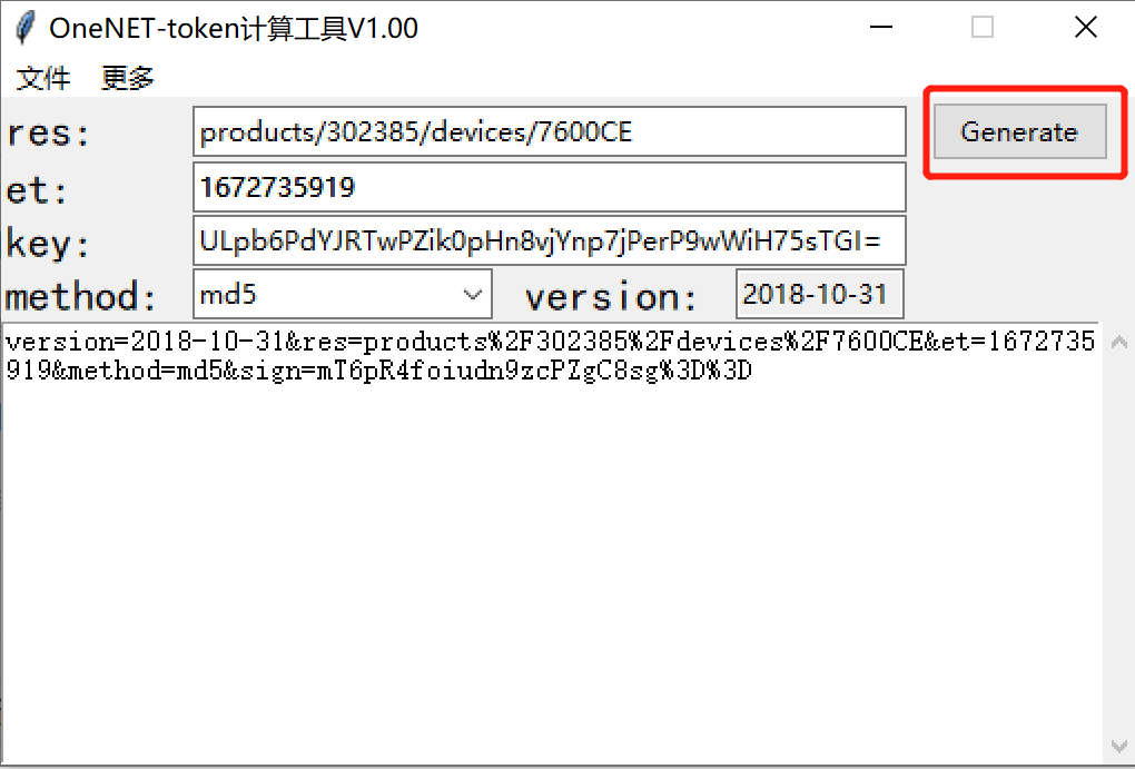 res、et、key三个数据分别填写到token工具,单击右上角的Generate按键,自动生成我们需要的Password;见下图所示: