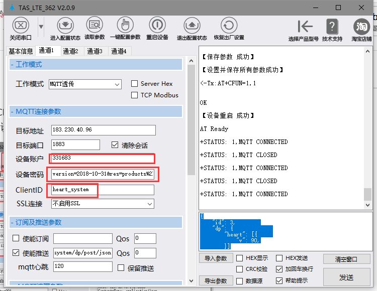 我的发布主题$sys/331683/heart_system/dp/post/json 发送消息订阅回复主题:$sys/331683/heart_system/dp/post/json/+