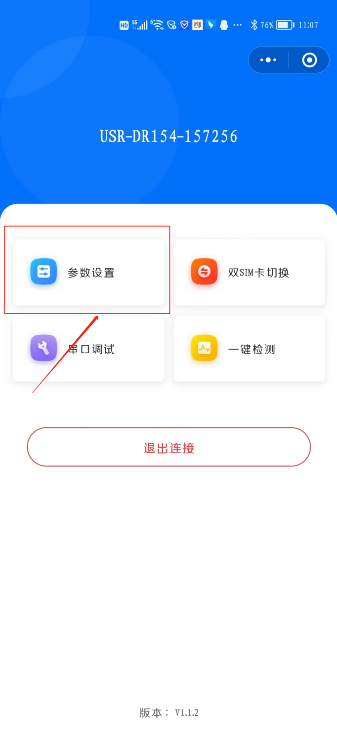 小程序会自动获取当前 USR-DR15X 的设置参数然后显示在微信小程序界面上,用户可以非常直观的查看设备