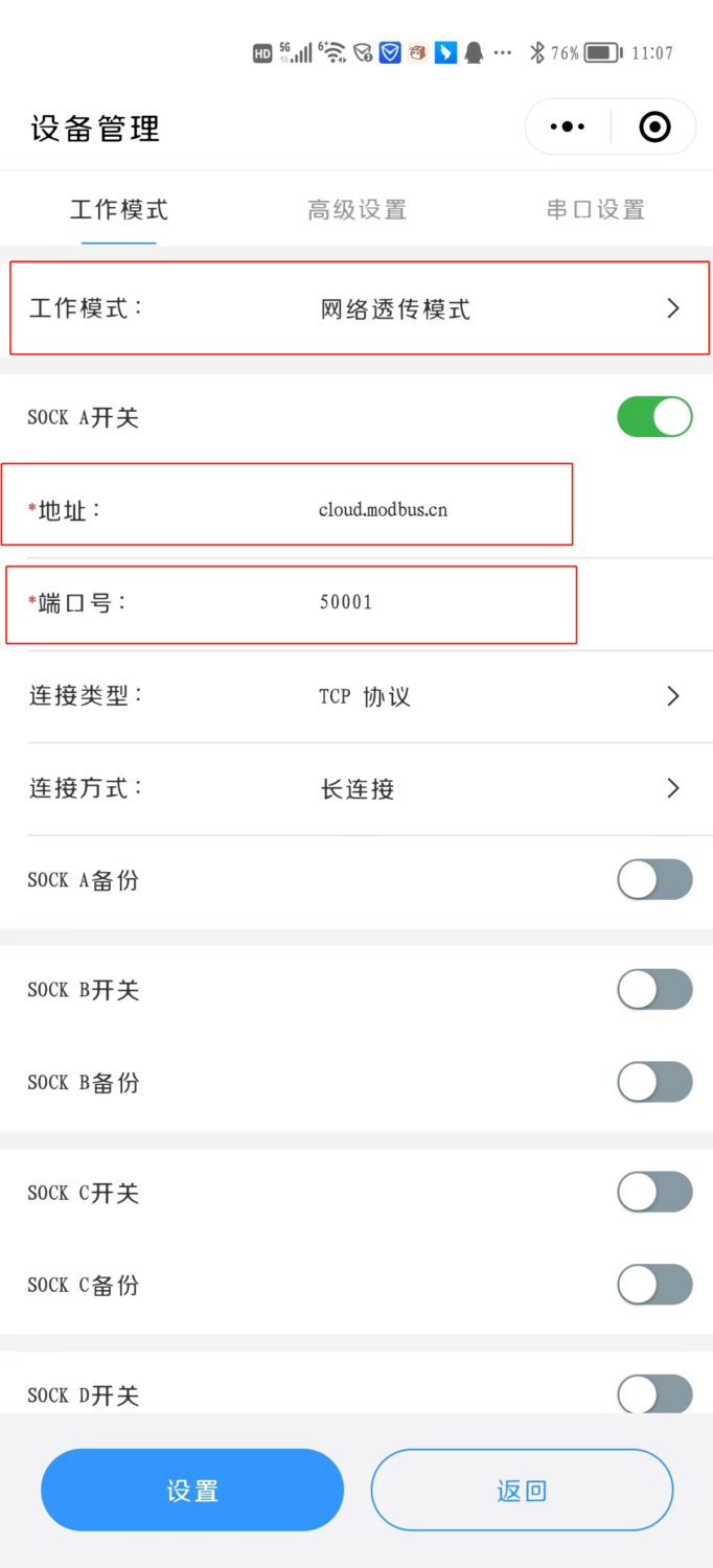 - 远程服务器地址:cloud.modbus.cn (推荐)