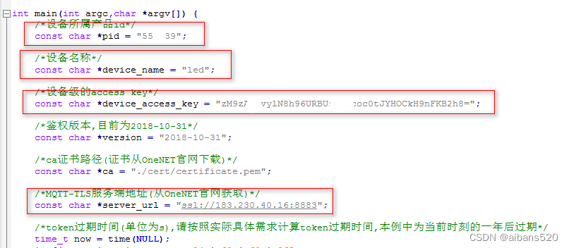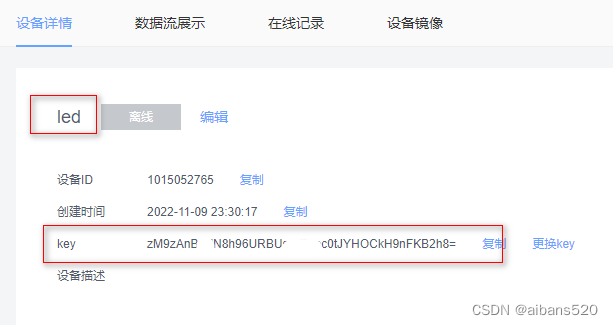 将上面的pid,device_name,key 修改成自己在OneNET平台的设备