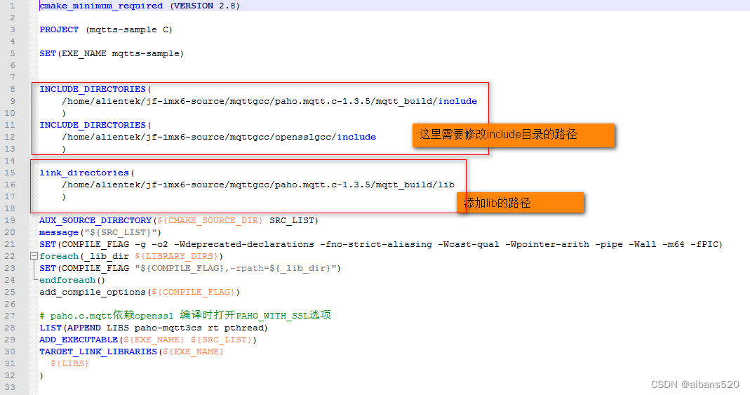 在执行cmake命令前,需要修改一下CMakeLists文件,否则会出错: