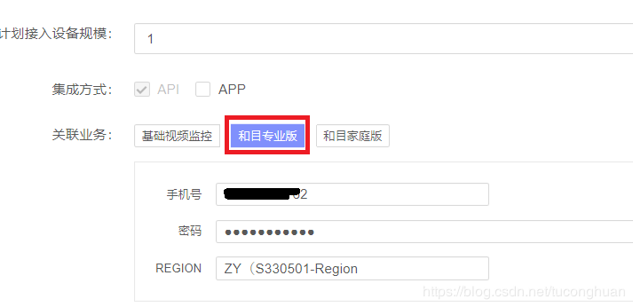 2、在和目开放平台申请账号 https://open.andmu.cn/,其中专业版账号密码和region与第一步相同,见图1;