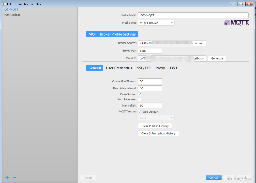以上的步骤处理完后,由于还没有写测试软件,可以先使用MQTT.fx测试接入,按操作文档指引操作,说的很详细。按照自己创建的产品设备信息填好即可连接上,连接上后,设备状态会跳变成在线状态。