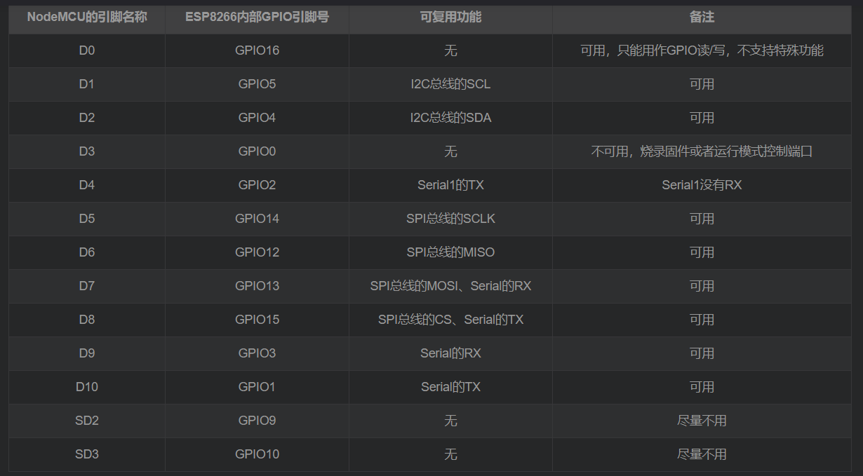 通过上表可知,iic总线的SCL和SDA分别接D1和D2。