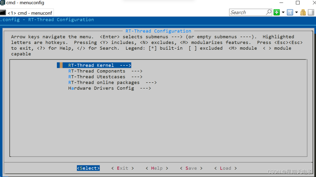 menuconfig 是一种图形化配置工具,RT-Thread 使用其对整个系统进行配置、裁剪。也就是使用mencuonfig进行rt-thread的功能配置