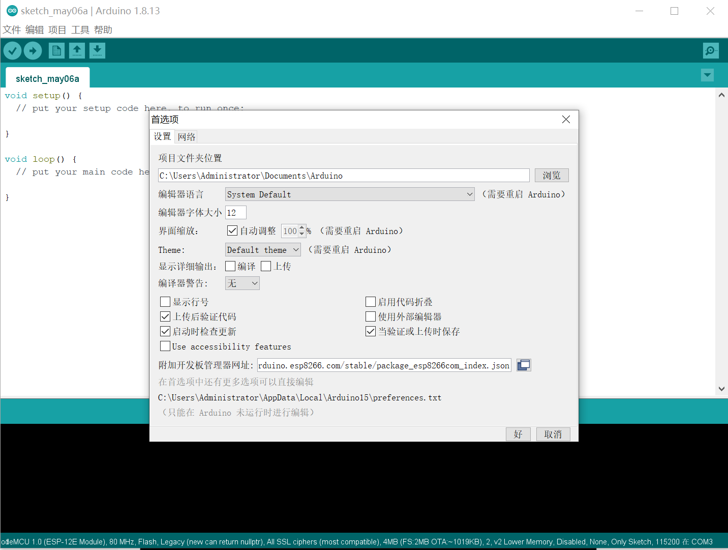 以上就是想人陪滑板最近收集整理的关于物联网-ESP8266实战(三)- 配置ESP8266 Arduino IDE开发环境的全部内容,更多相关物联网-ESP8266实战(三)-内容请搜索靠谱客的其他文章。