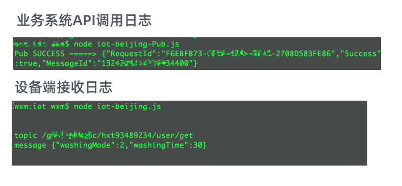 - 业务服务器调用IoT平台的API,下达控制指令到设备端