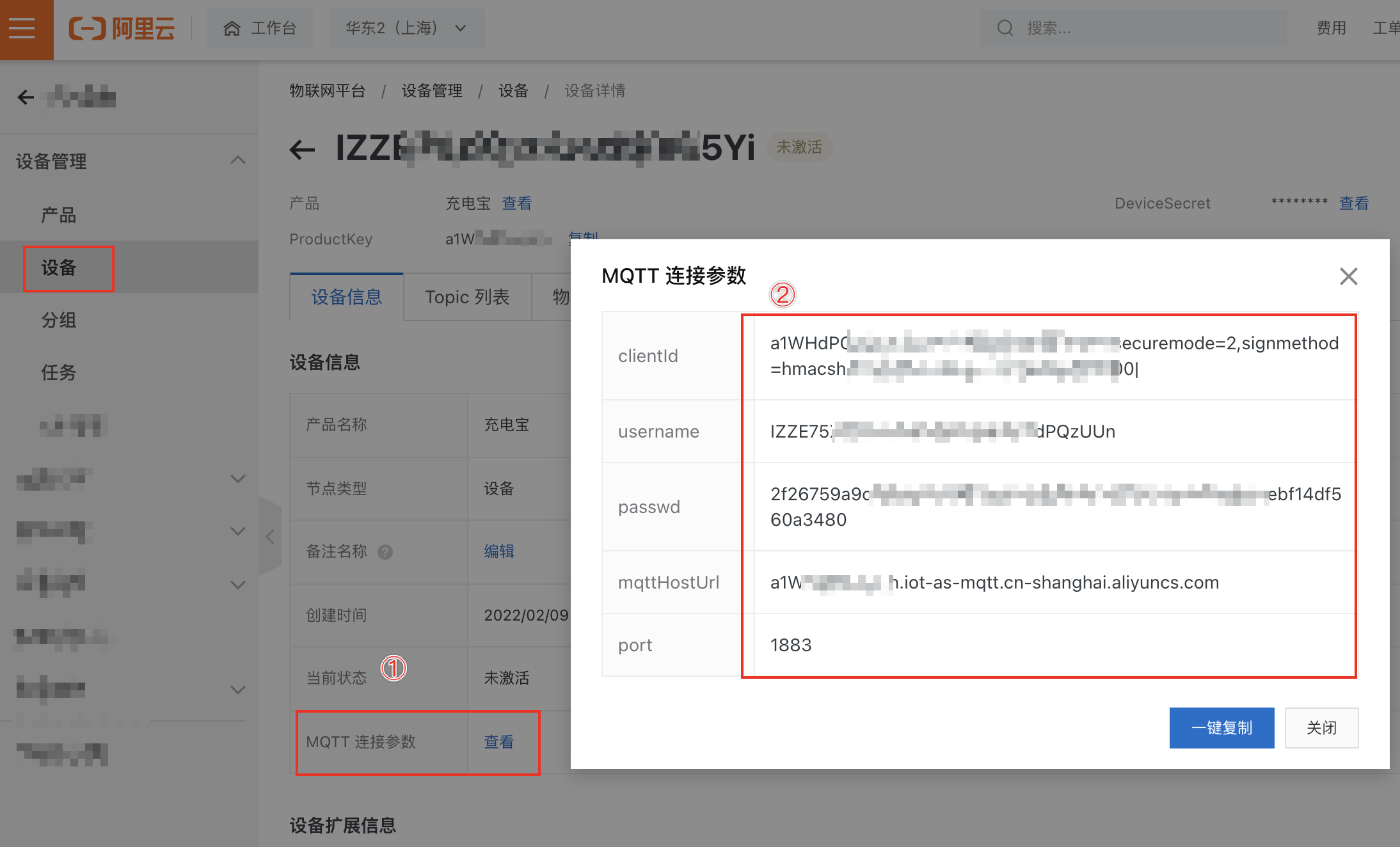 deviceSecret: "设备deviceSecret",