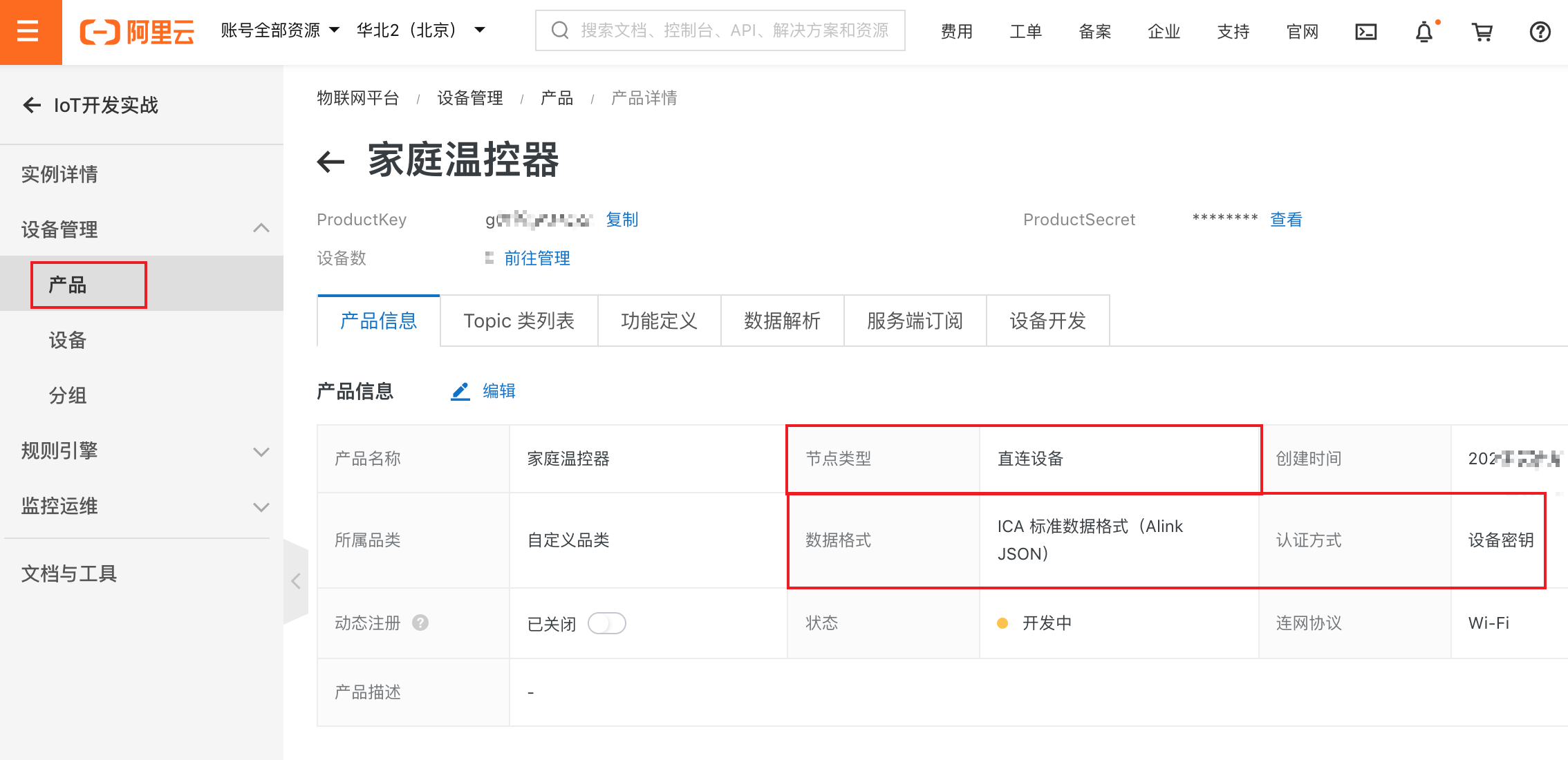 三、创建产品和注册设备