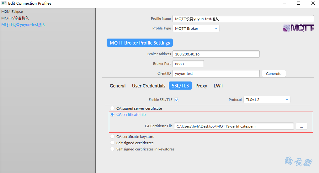 以上就是无情睫毛膏最近收集整理的关于OneNET物联网平台02 使用MQTT.fx模拟MQTTS产品设备连接到平台的全部内容,更多相关OneNET物联网平台02内容请搜索靠谱客的其他文章。