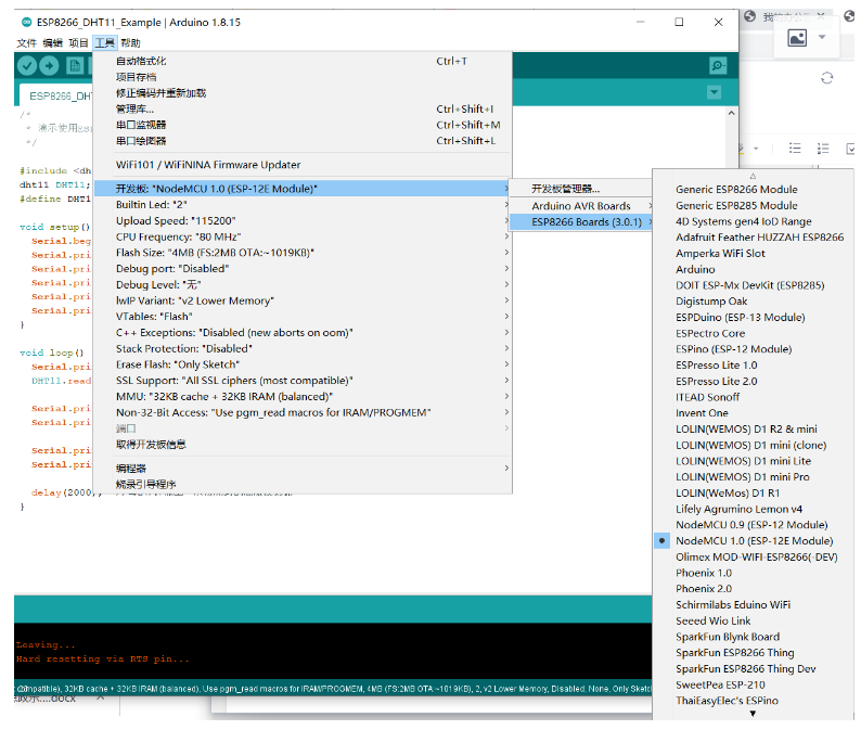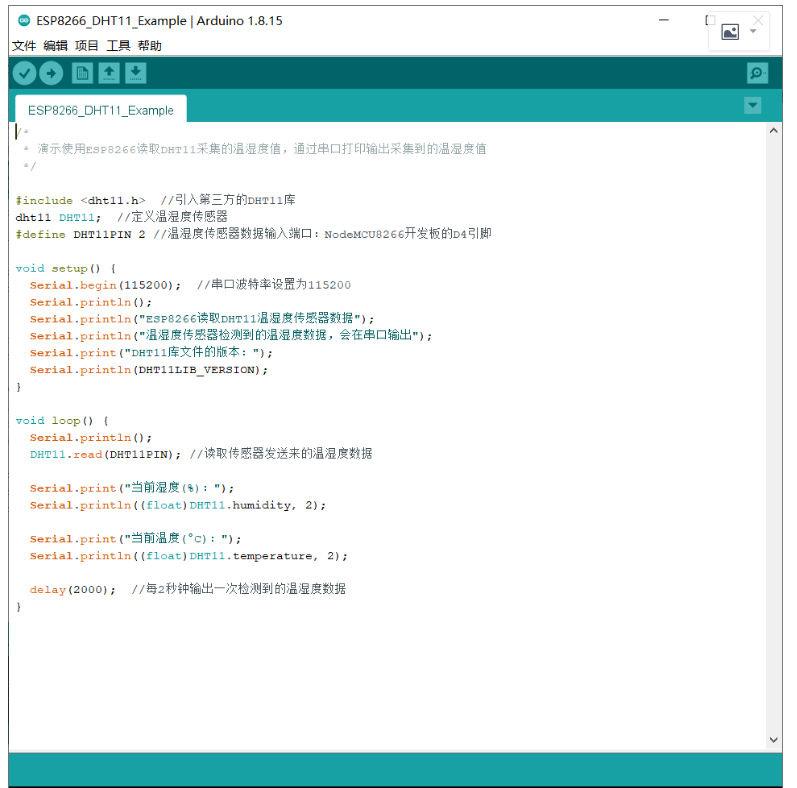 四、ESP8266获得温湿度传感器检测到的温湿度值