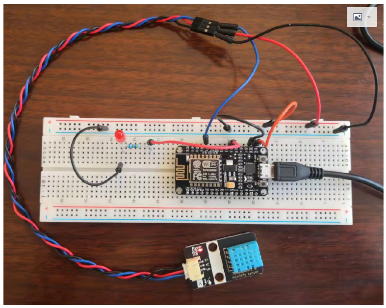 1. 硬件连接图(DHT11温湿度传感器的S信号端口,接在ESP8266开发板的D4端口)