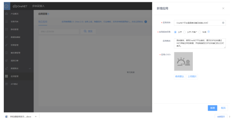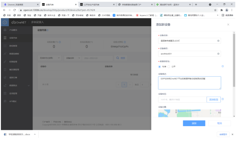 要给添加的设备设置一个APIKey,作为设备的唯一标识。