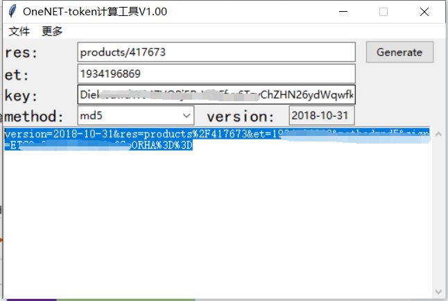token生成工具中的et为时间戳,百度上有很多时间戳在线工具以获取时间戳,这表示当到达时间戳所表示的时间后这个密钥将失效。key填写ONENet产品的access_key。