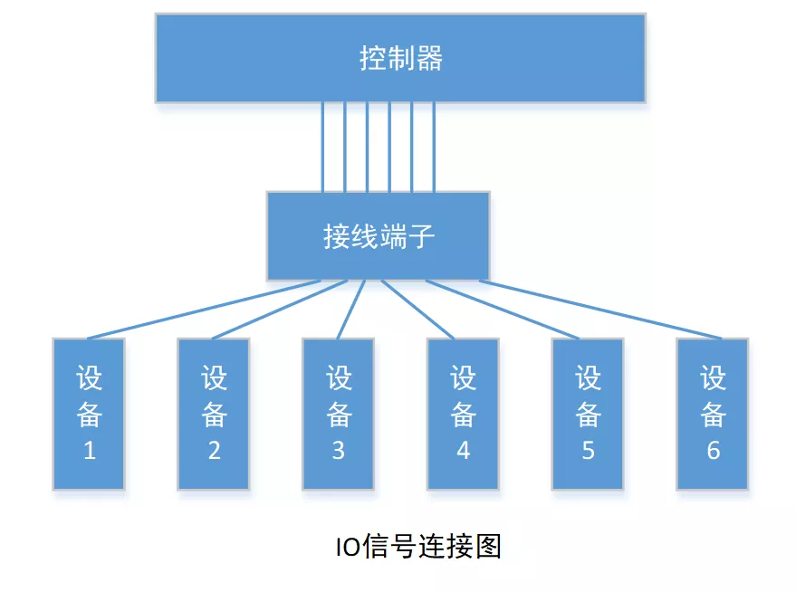 A:传统的自动控制系统采用一对一的I/O连接方式,即每个对象都需要单独和控制器连接,如果信号数量繁多,线路连接就会很复杂,如下图所示: