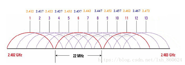 以上分析的前提是基于Wifi信道采用20Mhz带宽的分析,Wifi信道1和信道6之间会有一定的频谱空隙,这样zigbee信道的14,15所受干扰较小,同理Wifi信道6和信道11之间,zigbee的19,20信道所受干扰较小。而Zigbee信道24,25是在Wifi 11信道之外,对于美国来说,Wifi信道只有1-11,那么zigbee信道24,25所受Wifi干扰也小,而我们国家Wifi信道是1-13,如果Wifi信道设置在12,13,那么zigbee的24,25信道也将受到同频干扰。