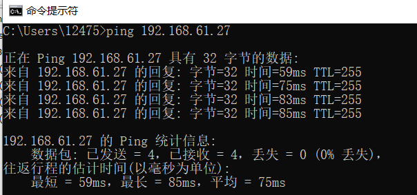 我们可以看到已经连接成功,并且分配的IP地址是:192.168.61.27