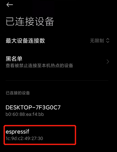 此时我们看热点的连接设备列表,可以看到有设备连接进来,如下图: