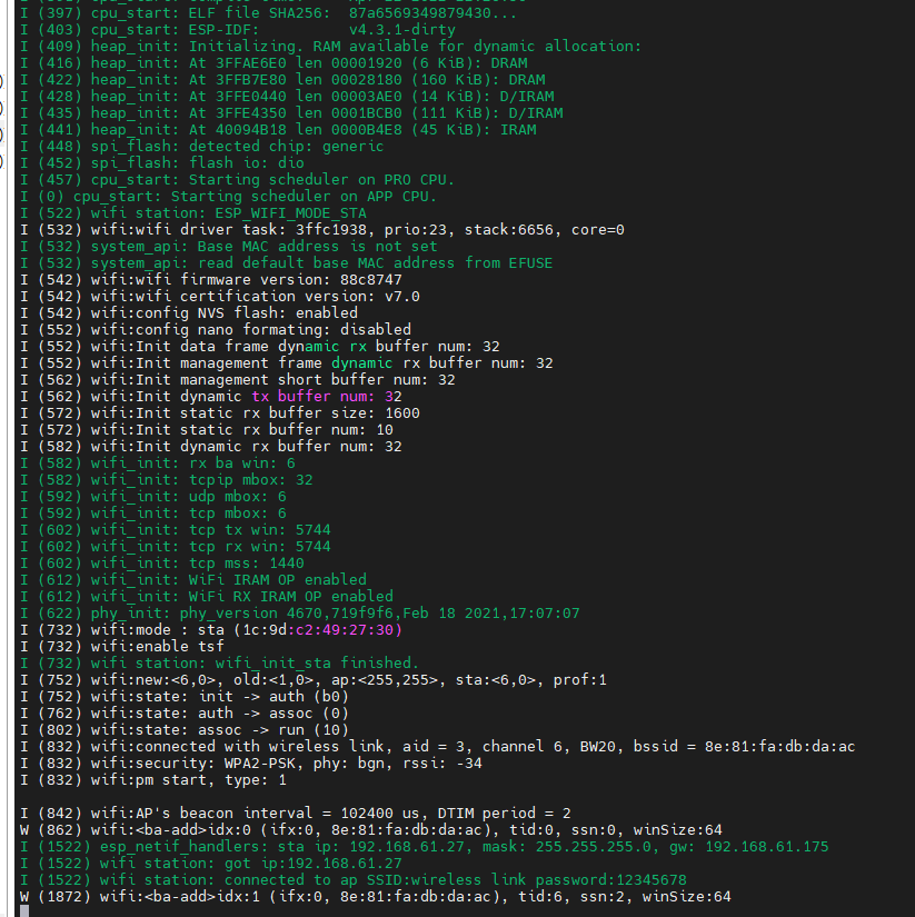 以上就是鳗鱼枫叶最近收集整理的关于ESP32 Wi-Fi讲解,station连接热点案例零. 声明一.Wi-Fi station的使用步骤二.代码三.效果演示的全部内容,更多相关ESP32内容请搜索靠谱客的其他文章。