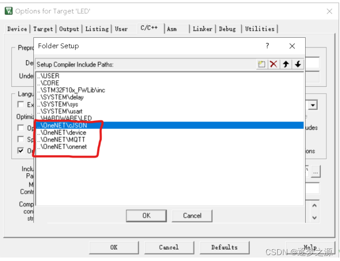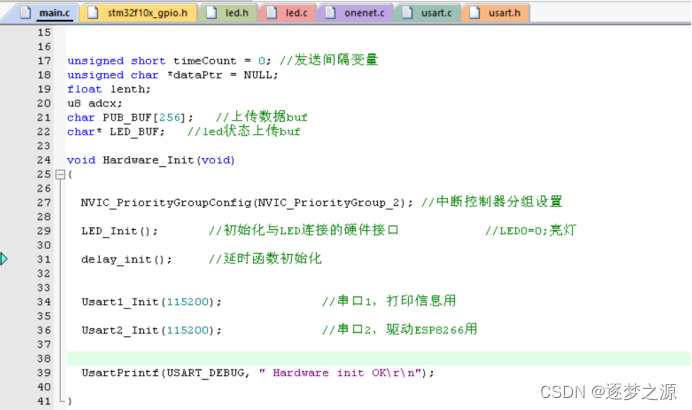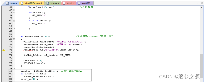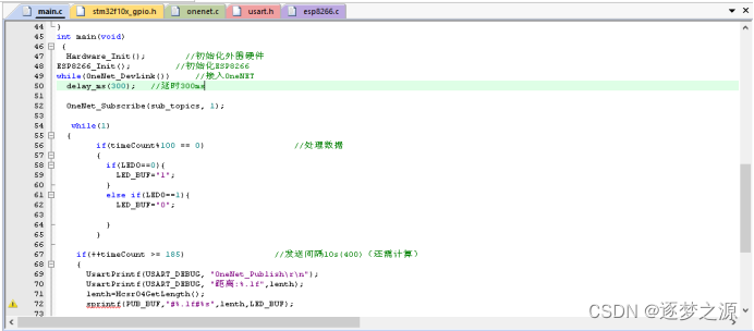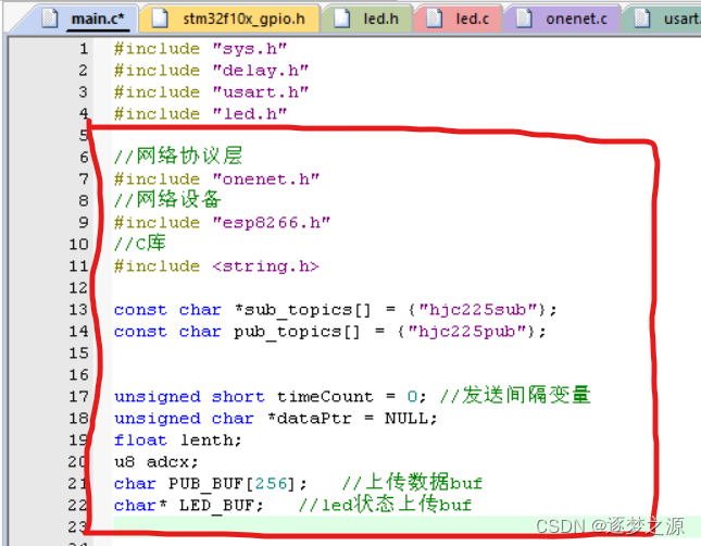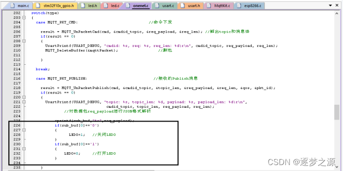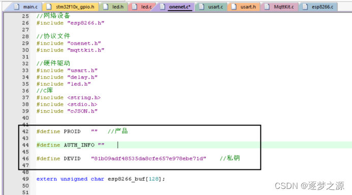 只需要修改onenet.c文件即可,需要注意的是,记得引入对应的头文件,如:我们这里要控制LED灯,则需在onenet.c文件中引入led.h文件