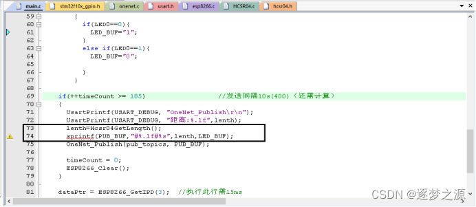 传输数据部分:以超声波模块为例,将所测得数据上传