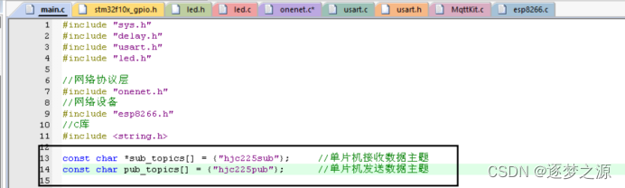const char *sub_topics[] = {"hjc225sub"}; //单片机接收数据主题
