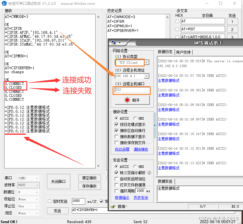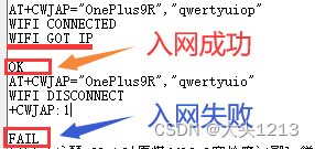 入网成功返回WIFI GOT IP等,最终返回值为OK