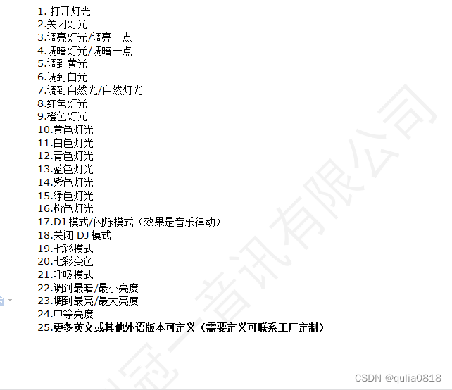 重点看下语音词条部分,以下是部分语音词条,尝试对着你设计的球泡灯用普通话说出来(大部分方言也可以,不妨试试):