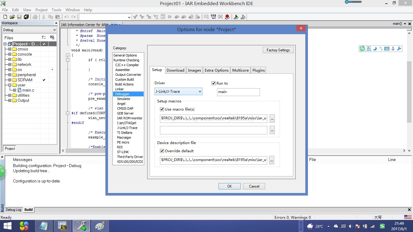 在Driver中选择“J-link/J-Trace”