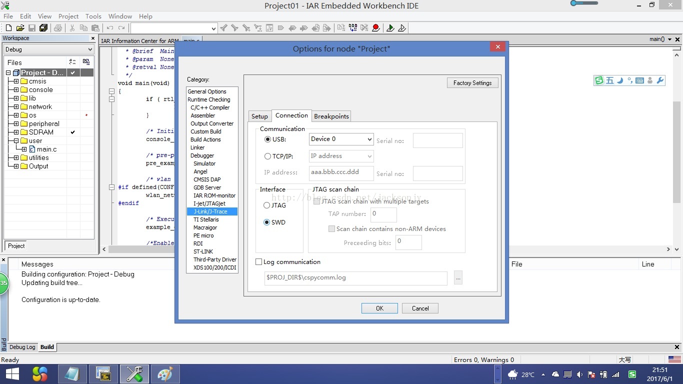 第一次导入sdk-ameba1-v3.4b3_without_NDA工程后,需要进行J-link的相关设置。