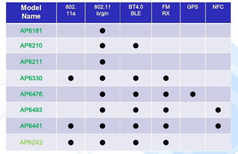 - AP6493: WiFi/BT4.0/NFC