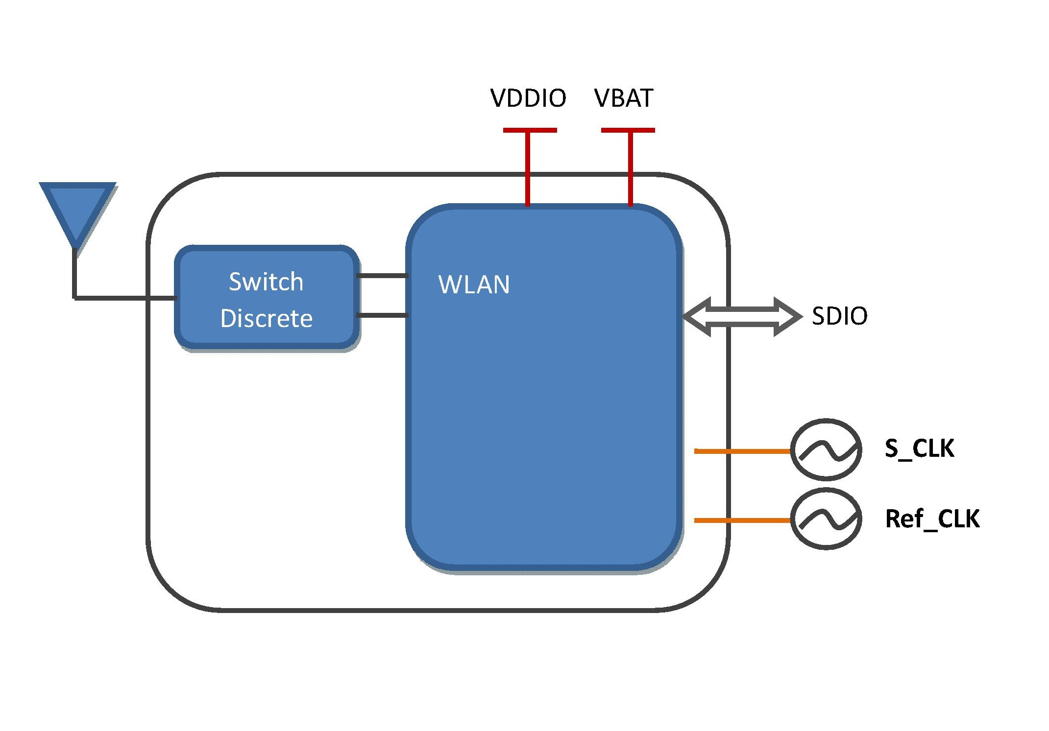 AP6210 无线模组, 内部集成 SDIO 接口的WiFi 芯片和 UART 接口的低功耗蓝牙 4.0.