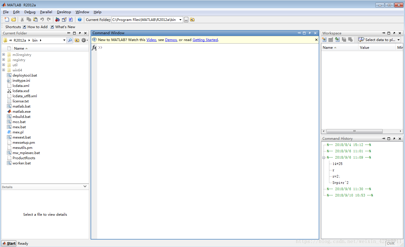 ③Workspace:字面意思是工作空间,其实就是暂存所有运行结果的地方,“暂”的具体含义是:关闭matlab后丢失