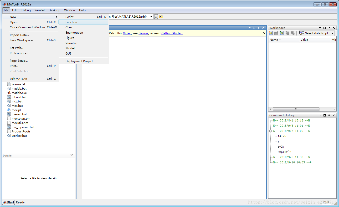 matlab之所以强大,就是因为提供大量的函数,我们也可以建立自定义函数,方法是:File->New->function。