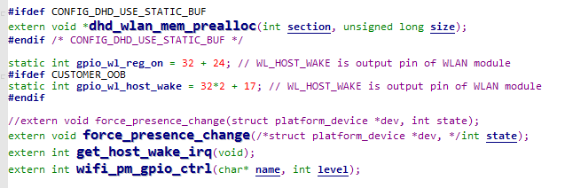1.4.2修改kernel-3.4.39/drivers/net/wireless/bcmdhd/dhd_gpio.c 中的force_presence_change 函数声明.