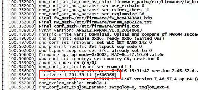 | 是客戶的op_mode設置錯了 NG: [ 7.356000] Final fw_path=/etc/firmware/fw_bcm43438a1.bin [ 7.610000] Firmware up: op_mode=0x0005, MAC=8c:f7:10:0f:af:ce OK: [ 10.034000] Final fw_path=/etc/firmware/fw_bcm43438a1.bin [ 10.193000] Firmware up: op_mode=0x0002, MAC=8c:f7:10:0f:af:dc