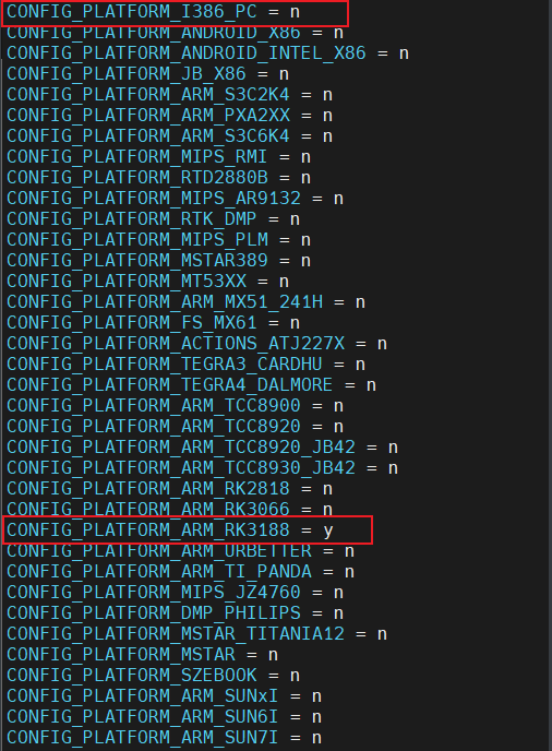 (4)修改 drivers/net/wireless/rockchip_wlan/Kconfig/rtl8822cs 下的 Makefile 文件 将文件中的CONFIG_PLATFORM_I386_PC 的值修改为 n 将文件中的 ONFIG_PLATFORM_ARM_RK3188 的值修改为 y